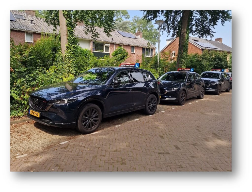 Wij geven les in twee Mazda’s CX 30 M Hybrid. Dit zijn milieuvriendelijke auto’s. Ze zijn voorzien van airco, zodat jij tijdens het lessen je hoofd koel kunt houden. Naast navigatie en adaptive cruisecontrole beschikt onze Mazda CX 30 over een achteruitrijcamera en parkeer sensoren voor en achter. Daarnaast heeft de auto Line assist met automatische correctie (deze kan ook uit).
